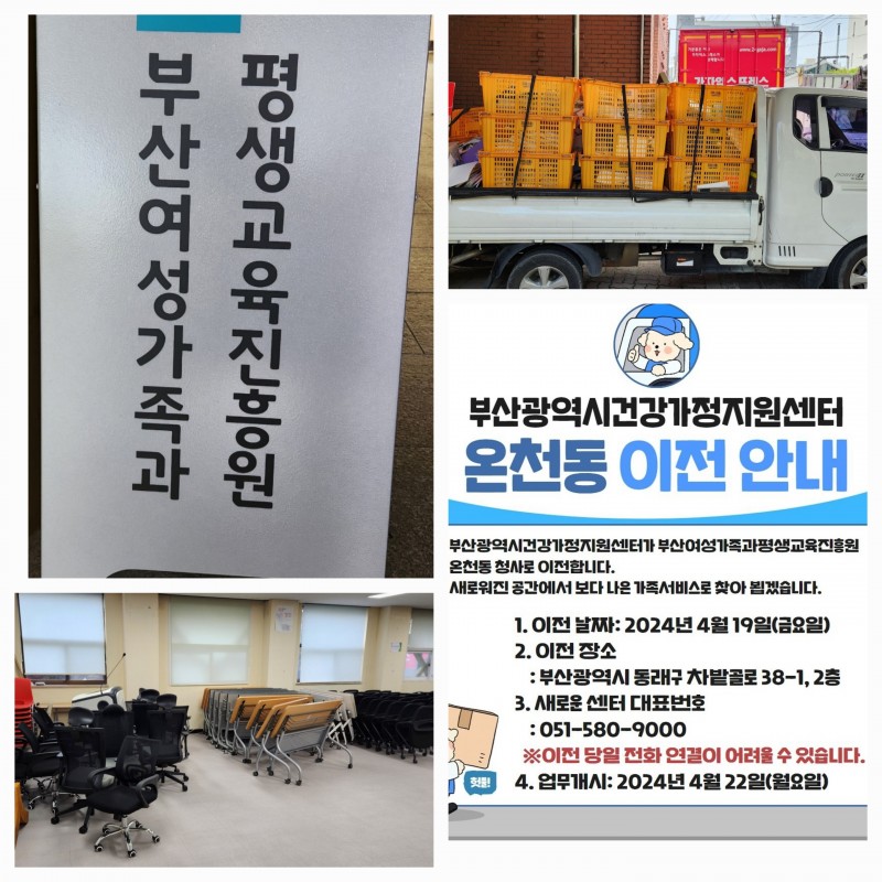 부산광역시 건강가정지원센터 이전 페이지 정보 작성자 가자익스프레스 작성일24-04-24 15:40 조회3,263회 댓글0건 이전글 다음글 목록 본문 건강가정지원센터가 온천동으로 이전하였습니다 댓글목록 등록된 댓글이 없습니다. 이전글 다음글 목록