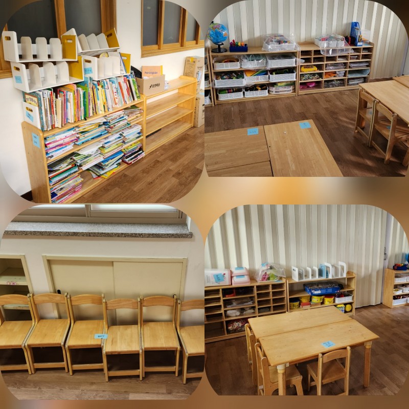 유치원이라 책상.의자.책.활동에 필요한 물건들이 주를 이룹니다. 최대한 흠집없이 파커들의 손놀림으로 포장하여 안전하게 옮겨 드립니다.